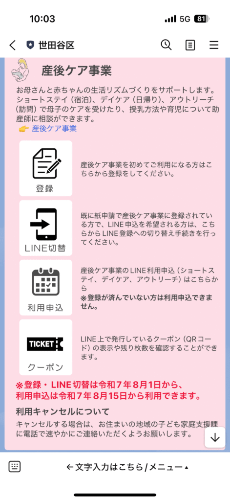 まず、世田谷区の妊娠期面接の際、産後ケア事業は事前に利用登録しないといけないということを教えてもらっていました😊