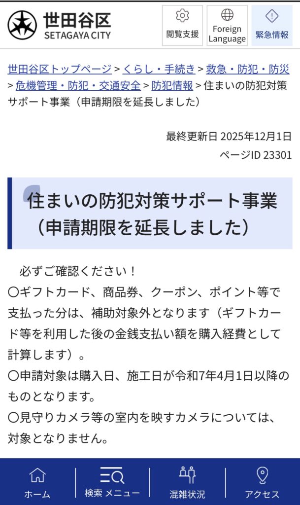 (世田谷区)➕(防犯)➕(補助)