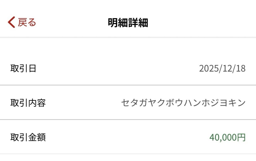 入金(2025/12/18)だったので、3〜4ヶ月というところでしょうか?